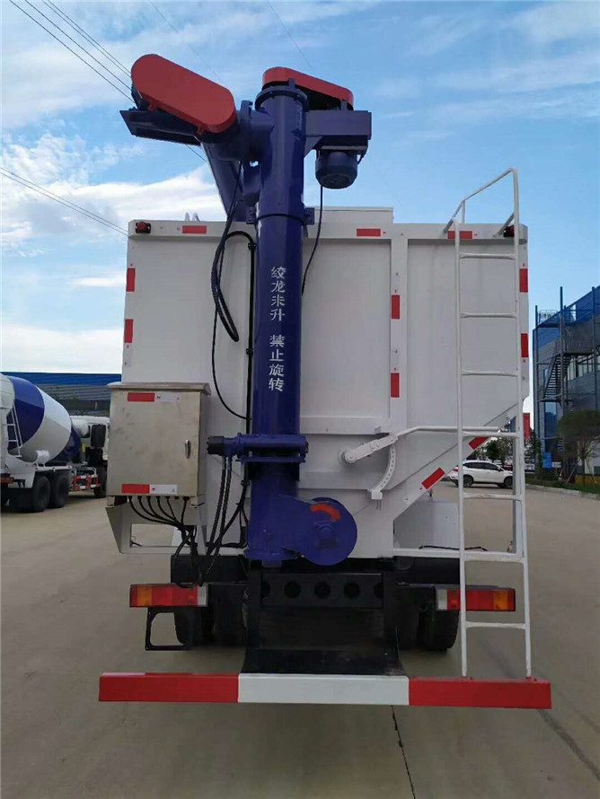 罐體采4mm優(yōu)質(zhì)鈦鋼板制作,罐體內(nèi)分為肆個(gè)倉(cāng),可獨(dú)立控制各分倉(cāng)卸料順序和速度,整車(chē)3條蛟龍(底部水平絞龍、尾部垂直絞龍、頂部卸料絞龍),由3個(gè)5.5kw 380v電機(jī)帶動(dòng)各絞龍工作,頂部絞龍液壓控制舉升,可左右旋轉(zhuǎn)180°。