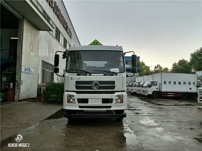 東風(fēng)天錦雜項危險品運輸車車頭為白色,發(fā)動機為ISB190 50,上戶10.95噸(黃牌),東風(fēng)6檔變速箱,新規(guī)原廠?;妆P,具有ABS防抱死系統(tǒng),前輪盤式制動,限速裝置(80km/h),排氣管前置,排氣制動,帶方向助力,空調(diào),加裝電動門窗,汽剎。空氣懸架,轉(zhuǎn)向輪防爆胎應(yīng)急裝置,剎車襯片磨損提醒。