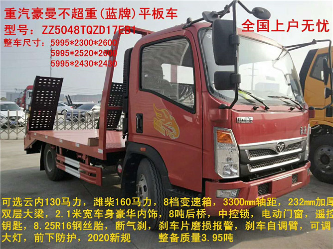 此款重汽豪曼平板運(yùn)輸車不超重,上戶無憂,是一款值得考慮的藍(lán)牌平板運(yùn)輸車。