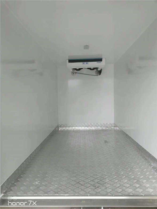 廂體參數(shù):廂體壁板采用2.2mm內(nèi)外玻璃鋼板材料制作,中間保溫層為80mm聚氨酯保溫板材料,箱體周圍采用鋁合金型材包邊,不銹鋼包角,門框及鎖飾件均為不銹鋼材質(zhì),安裝制冷機組最低溫度可以達到-18度(可調(diào)節(jié))