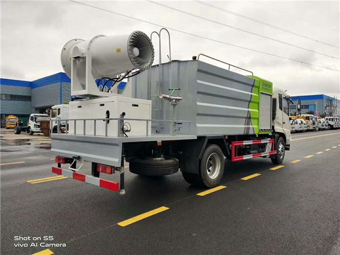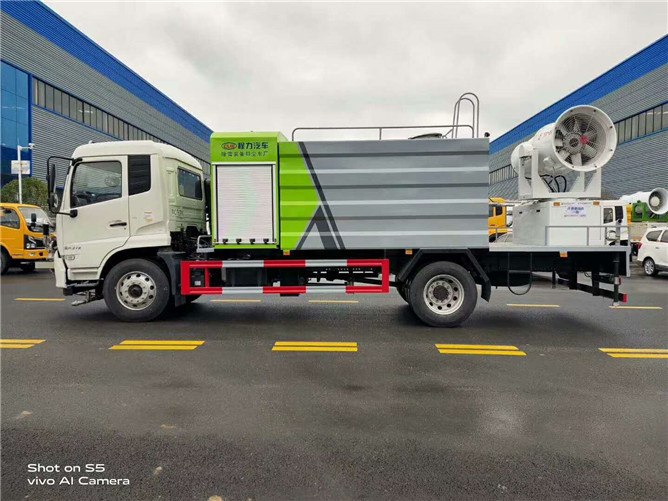 東風(fēng)天錦抑塵車配備前沖、后灑、側(cè)噴(均采用6個(gè)T型球閥駕駛室自動(dòng)操作控制)高炮、加大工作平臺(tái),前置卷簾門消音發(fā)電機(jī)倉(cāng),中置加大容量方型水箱,罐體滿載容積12立方(罐內(nèi)采用環(huán)氧玻璃鱗片防腐處理質(zhì)保兩年),是一款配置不錯(cuò)的環(huán)衛(wèi)車。