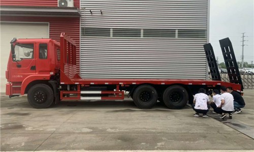 東風(fēng)錦程平板運(yùn)輸車,配電動(dòng)液壓爬梯!玉柴240馬力,陜齒8檔變速箱,10噸后橋,10.00鋼絲胎,電動(dòng)門窗,空調(diào),氣囊座椅。板長(zhǎng)7.5米含斜坡。