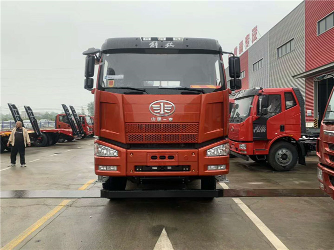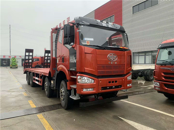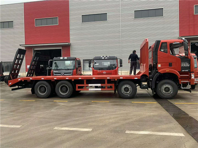 解放J6平板運輸車準(zhǔn)備發(fā)車!錫柴350馬力,解放12檔變速箱,16噸后橋,11.00鋼絲胎,電動門窗,空調(diào),氣囊座椅,行車記錄儀,2100+3600+1350軸距,整車板長含斜坡8.2米。