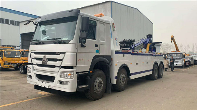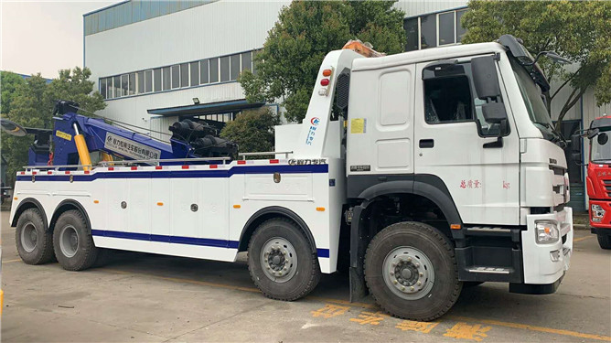 重汽前四后八托吊聯(lián)體清障車,重汽380馬力國(guó)五發(fā)動(dòng)機(jī),豪沃10檔變速箱,9T前橋,16T后橋,帶盤式制動(dòng),12.00鋼絲胎,ABS,帶空調(diào)。20T20D上裝(25T20D上裝),進(jìn)口閥,六邊形二節(jié)式吊臂,三節(jié)式托臂,分體式車廂,雙側(cè)聯(lián)動(dòng)式操作裝置,后工作燈2只,后指示燈2只,2個(gè)100KN液壓鉸盤(45米鋼絲繩),U型抱胎裝置1套,托叉4對(duì),鋼板吊耳托叉1對(duì),拖車座1對(duì),輔助制動(dòng)氣管總成1套,電子警燈,其余標(biāo)配。