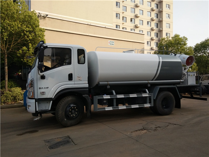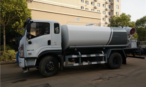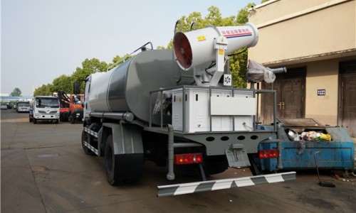 10立方東風(fēng)天錦抑塵車(chē)搭載康機(jī)180馬力發(fā)動(dòng)機(jī),9.00R20輪胎,罐體形狀為圓罐。