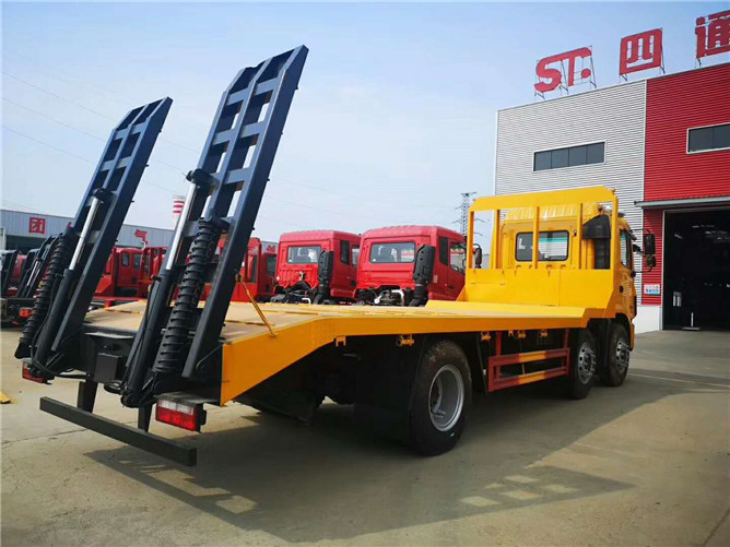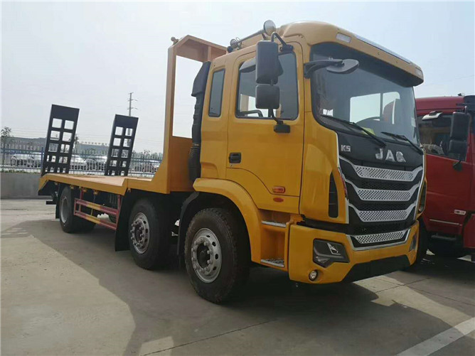 江淮小三軸挖機平板車搭載玉柴220馬力發(fā)動機,法士特8檔變速箱,兩邊液壓伸展,液壓爬梯。