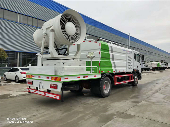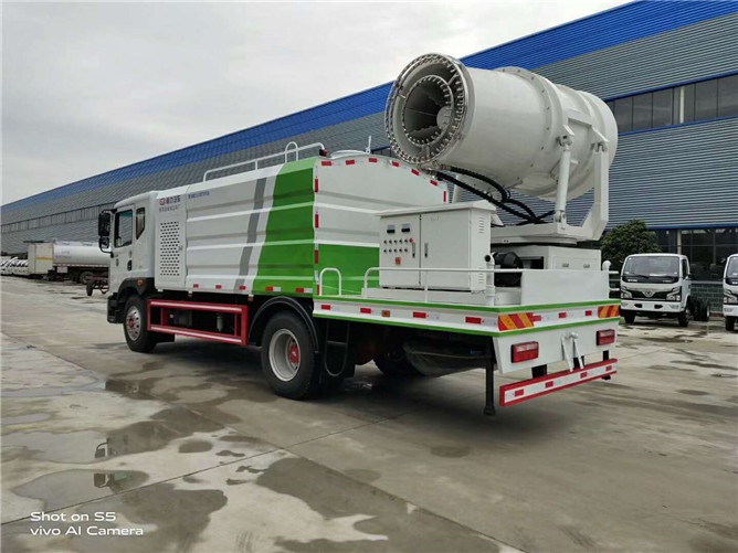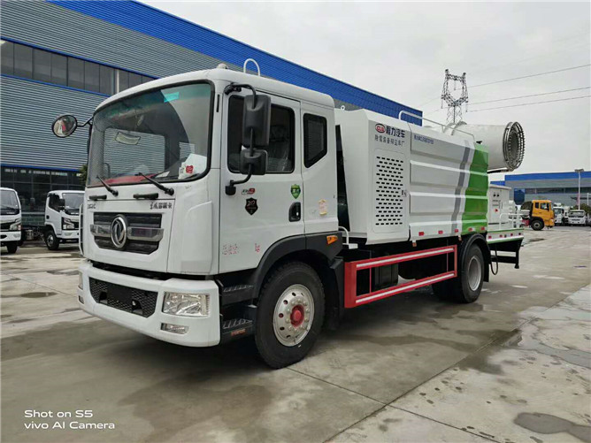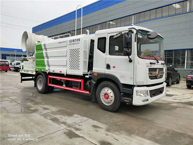 東風(fēng)D9抑塵車配備前沖、后灑、側(cè)噴(均采用6個(gè)T型球閥駕駛室自動(dòng)操作控制)高炮、加大工作平臺(tái),前置卷簾門消音發(fā)電機(jī)倉(cāng),中置加大容量方型水箱,罐體滿載容積10立方,是一款配置不錯(cuò)的環(huán)衛(wèi)車。