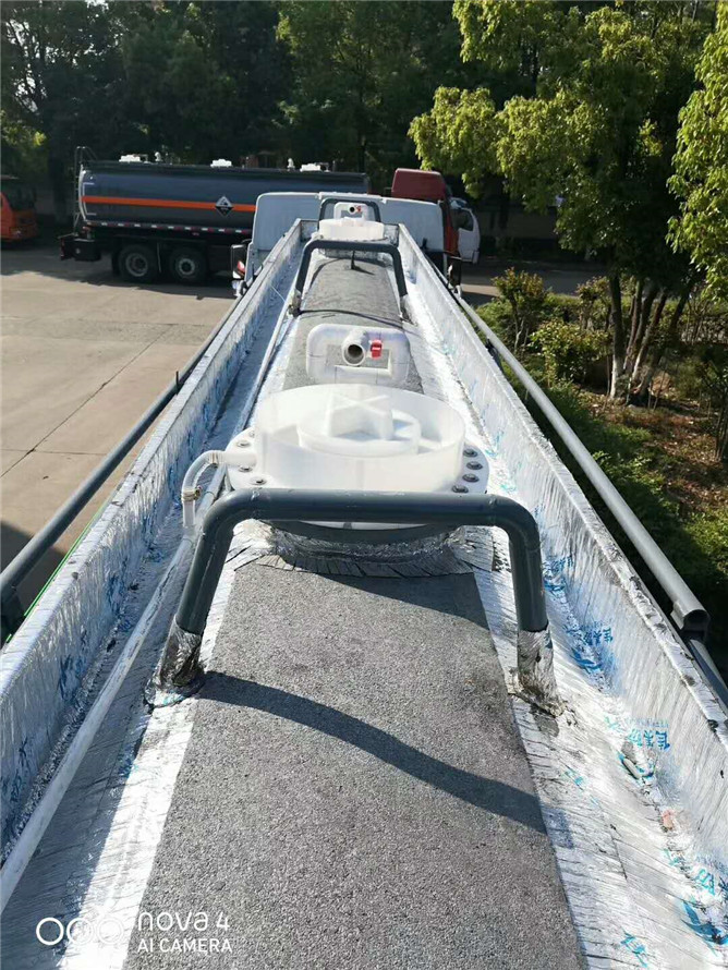 鹽酸罐式車容積18.3立方,罐體采用Q235板材制作,筒體4.2mm,封頭4.75mm,襯塑16mm,兩個(gè)進(jìn)料口,后尾部左右自流。解放8*4底盤,錫柴260馬力發(fā)動(dòng)機(jī)。