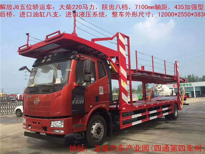 解放J6轎運(yùn)車搭載大柴220馬力發(fā)動(dòng)機(jī),四缸機(jī),陜齒八檔,7100軸距,435加強(qiáng)型后橋,上裝標(biāo)配凈板長12米,下板凈長9.8米,全車標(biāo)配8支進(jìn)口油缸,上裝全低合金高強(qiáng)材料制作。