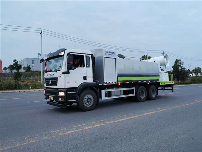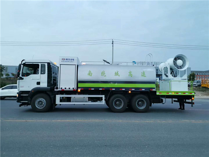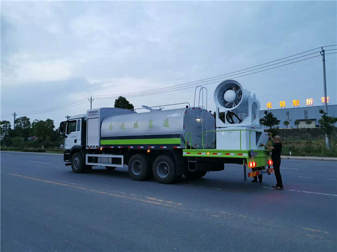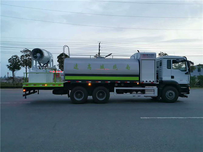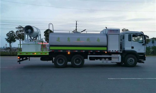 標(biāo)配50/110大功率專用水泵,標(biāo)配罐體內(nèi)環(huán)氧玻璃鱗片防腐處理,質(zhì)保兩年,主管道加粗至前后三通,平臺(tái)可加裝50米、60米、80米、100米風(fēng)筒式霧炮,百葉窗開門式機(jī)艙,可作為單獨(dú)灑水車使用,具備多種抑塵功能。