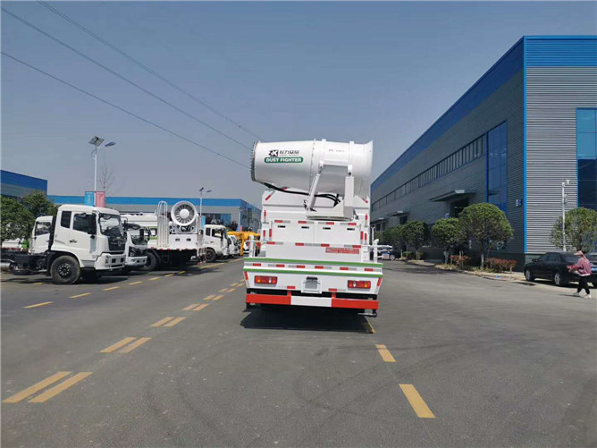 ①前沖(駕駛室下方)+中間加兩個萬向鴨嘴、后灑、側(cè)噴、①花紋板(管網(wǎng)位置:平臺下方)、高炮(副駕一側(cè)邊角),高位花灑(不安裝),主管道(前沖主管道65變50),噴水球閥(大通徑球閥),消防出口(消防球閥),擋泥板(防飛濺),頂燈(示闊小燈),支掌(單支掌),加裝80米噴霧機(jī)組。