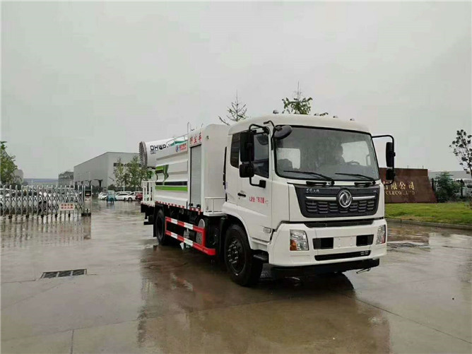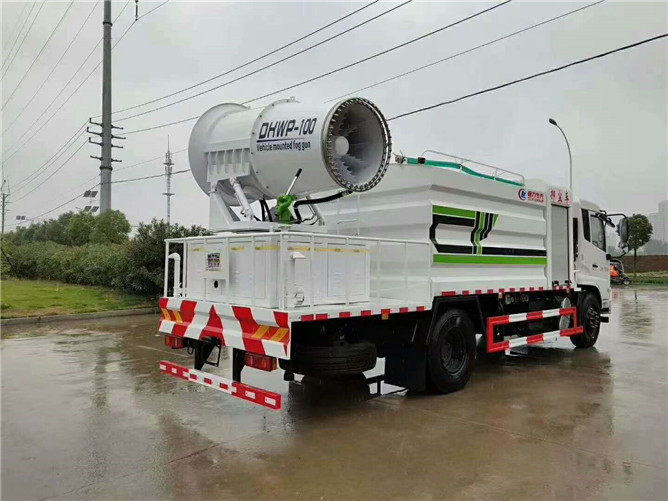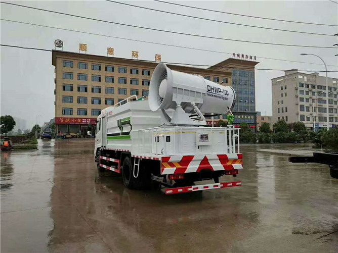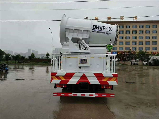 功能配置:帶前部沖洗路面噴灑裝置、后部扇形降塵噴灑裝置,兩側(cè)面噴灑裝置,帶后部工作平臺、平臺上80米霧炮車(實際水平靜風(fēng)射程85米)帶消防接口、自流閥,可自吸自排。