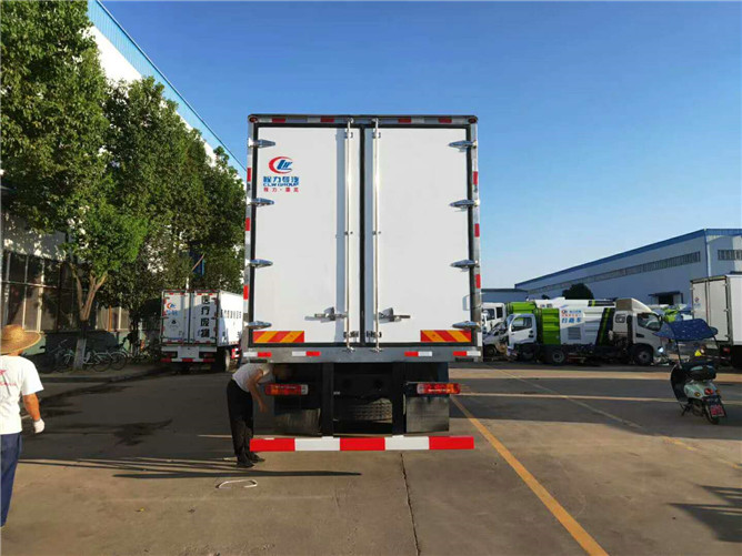 內(nèi)外優(yōu)質(zhì)玻璃鋼板,中間高密度保溫層,廂體厚度8CM,門鎖鉸鏈不銹鋼成型件,鋁合金型材包邊,地板鋁花紋板。