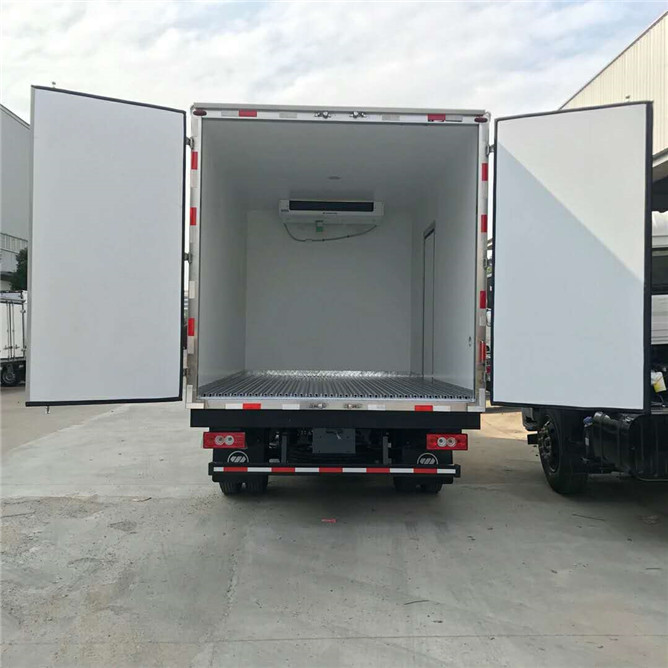 (3)廂體配件:廂體周邊鋁合金包邊,不銹鋼包角,不銹鋼門鎖,不銹鋼門框及合頁(yè),廂體內(nèi)節(jié)能LED照明燈。標(biāo)配凱利制冷機(jī)組,采用進(jìn)口冷王壓縮機(jī),也可選裝華泰、韓亞、冰森、凱雪、開利、冷王等其他機(jī)組(整車3.7噸)超重500公斤。
