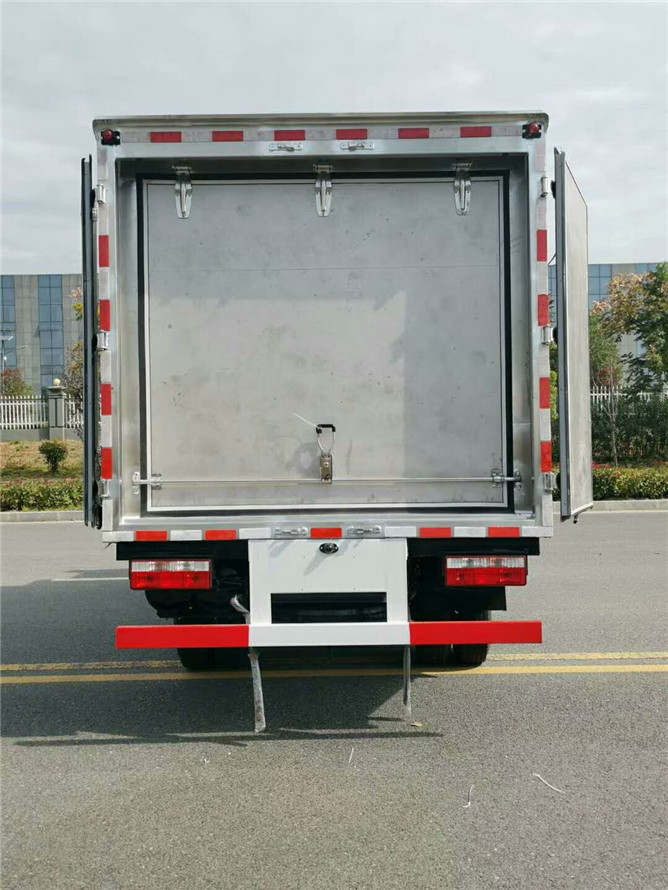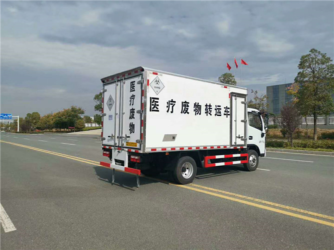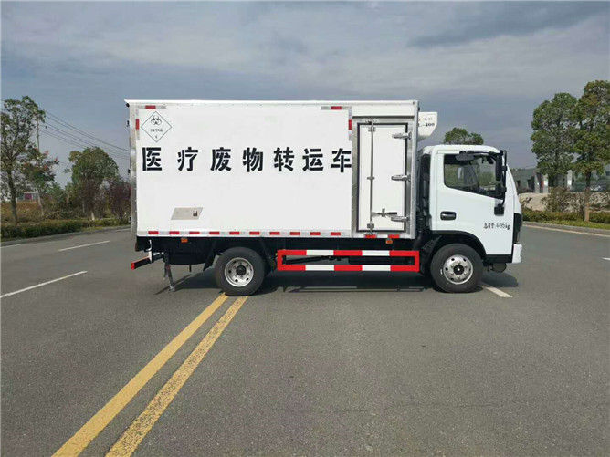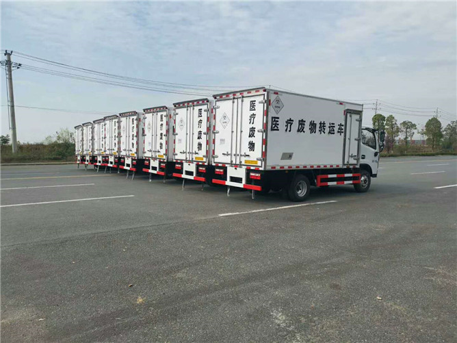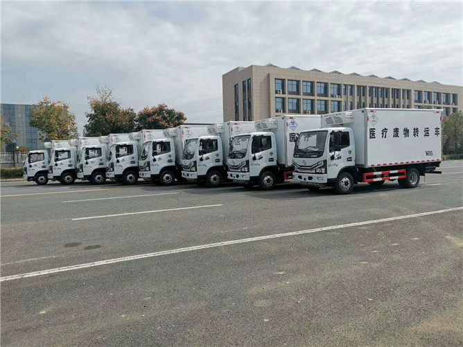 該車采用東風(fēng)多利卡D6柴油平頭醫(yī)療廢物廂式運(yùn)輸車,朝柴發(fā)動(dòng)機(jī)130馬力國(guó)六排放標(biāo)準(zhǔn),帶方向助力,6檔變速箱700綱絲胎,氣剎帶前盤式剎車,ABS,限速裝置,廂體采用外飾玻璃綱內(nèi)飾不銹鋼中間4公分保溫層制作,廂內(nèi)頂部安裝紫外線滅菌燈,配電動(dòng)噴霧消毒桶一個(gè),安裝零下零度至零下5度冷藏機(jī)組。