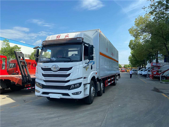 甲醇屬于危險(xiǎn)品,且屬于3類易燃液體,瓶裝的甲醇必須由專業(yè)的甲醇廂式運(yùn)輸車運(yùn)輸,今天為大家介紹一款解放小三軸的廂式車。