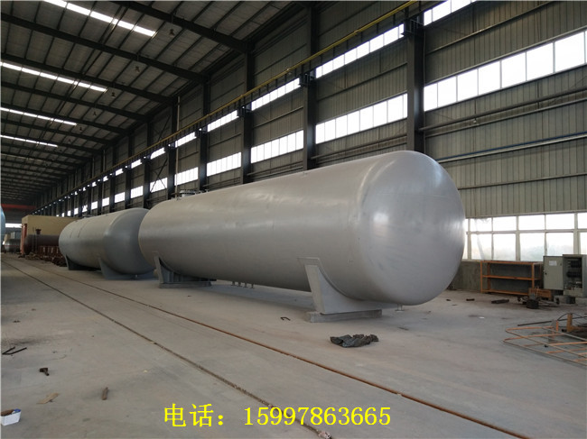 63立方液化氣貯存罐在一些中型液化氣充裝站內(nèi)經(jīng)常用到,它的設(shè)計(jì)壓力為1.77MPa,直徑2700mm,總長(zhǎng)度11.5米,滿載可裝載25噸LPG介質(zhì)。