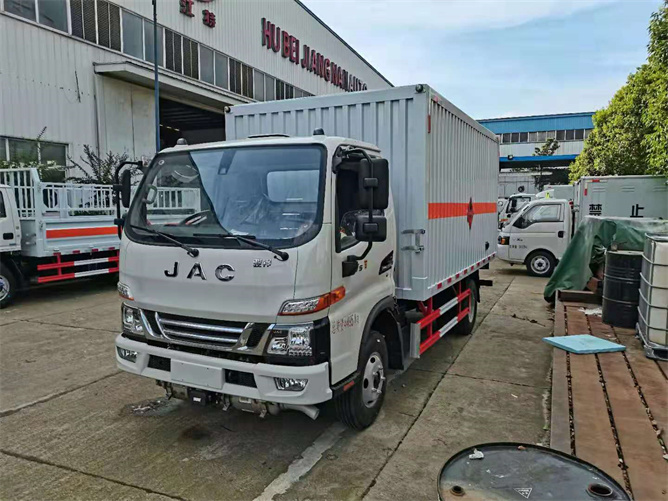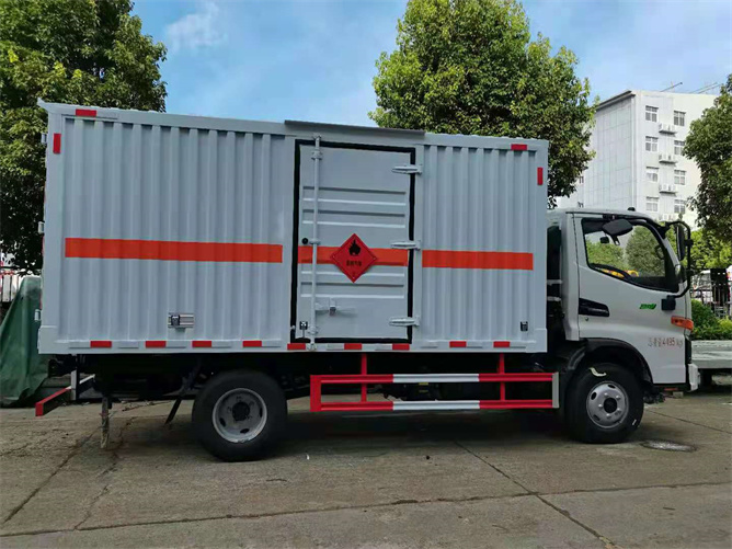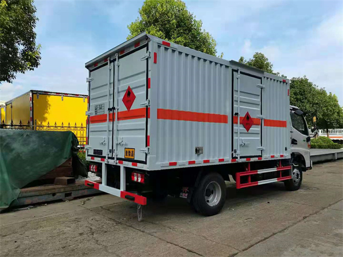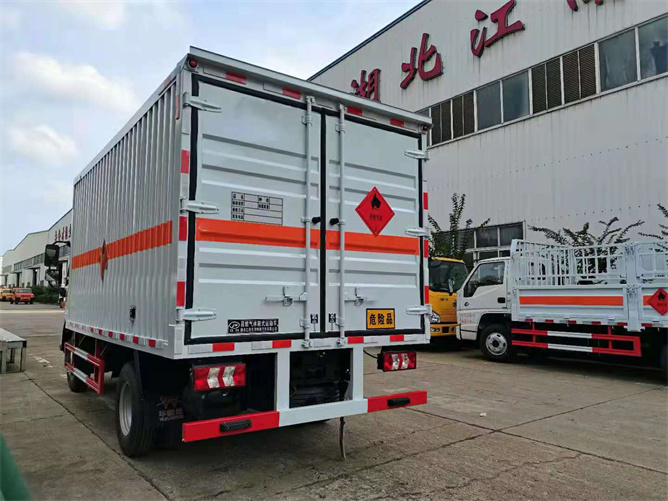 廂體為單層瓦楞板結(jié)構(gòu),廂體右側(cè)中開單側(cè)門,底板為花紋板,上鋪防靜電膠皮,廂內(nèi)兩側(cè)加裝固定貨物卡槽,門框帶防盜報(bào)警器,頂部帶煙霧報(bào)警器。配備隨車工具,滅火器,三角頂燈,防靜電拖帶,貼反光標(biāo)識(shí)等。