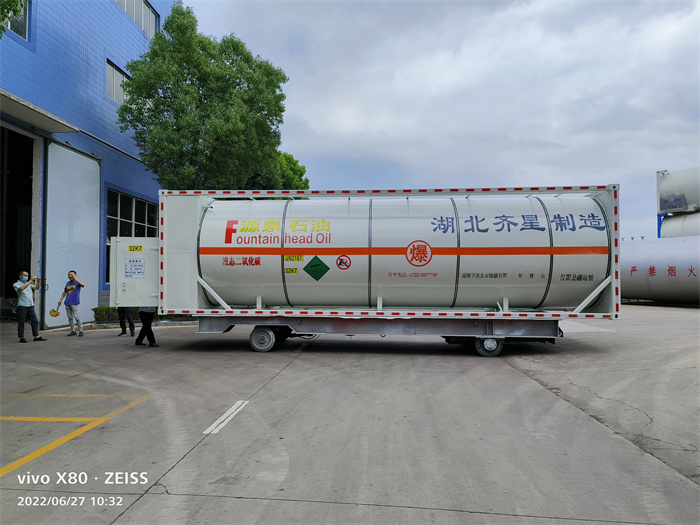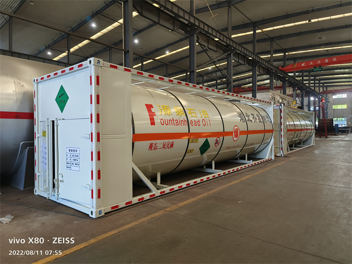 30英尺二氧化碳罐式集裝箱主要由框架、罐體及管路系統(tǒng)等組成,罐體外部采用聚氨脂保溫。筒體和封頭材料均經(jīng)過檢驗,且進廠后還進行