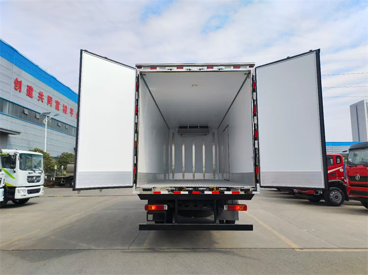 冷藏車廂體采用先進的最新木質(zhì)工藝、斷橋隔熱技術(shù),箱體內(nèi)外高強度玻璃鋼,深埋螺栓,采用大型負壓設(shè)備無縫合成,一次成型,降溫速度快、散溫慢、保溫效果好,中間8CM高級保溫板填充,底板采用10CM厚具有抗震保溫耐用加厚板,廂體四周采用直角鋁型材包邊,后門采用不銹鋼鎖件。