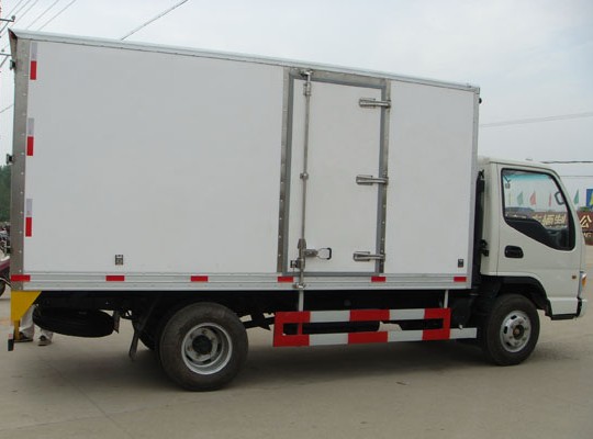 江淮駿鈴4.2米冷藏車,選用江淮原廠駿鈴底盤改裝,該車軸距為3308mm 選用東風(fēng)朝柴原廠四缸123匹馬力發(fā)動(dòng)機(jī)
