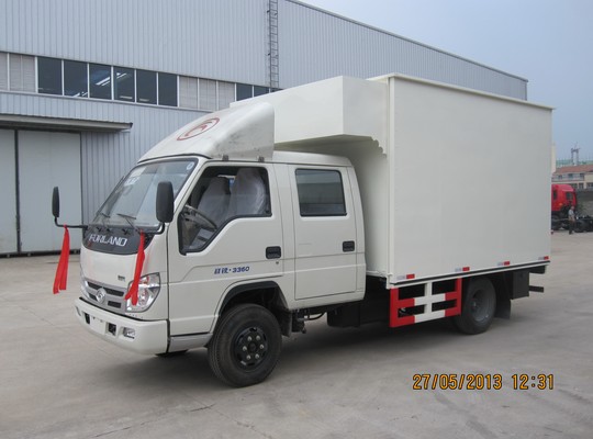 福田原廠祥銳底盤改裝,該車軸距為3360mm 選用安徽全柴動力四缸95匹馬力發(fā)動機(jī) 。駕駛室?guī)ХD(zhuǎn),燃油種類為:柴油 排