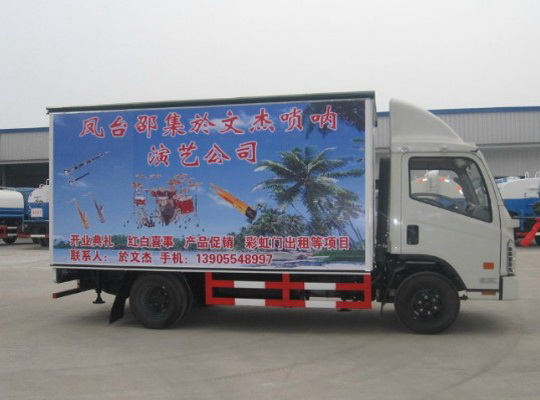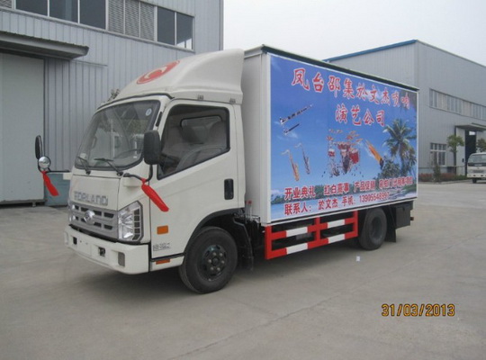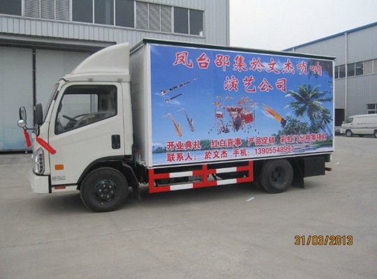 油 排放標(biāo)準(zhǔn)為:國四,跟據(jù)用戶使用需求可加裝駕駛室空調(diào)和方向助力。 側(cè)面展開為:1車廂頂部半掀開,側(cè)廂 體放下作為舞臺板,2邊廂和車廂頂部二分之一同掀起,內(nèi)藏式舞臺板(可選擇) 兩面展開為:左右?guī)w升起隨液壓缸升至1.3----1.5米左右 ,內(nèi)藏式舞臺板,液壓展開. 三面展開為: 左右?guī)w升起隨液壓缸升至1.3----1.5米左右,左右內(nèi)藏式舞臺板,液壓展開,后門和雨延自 動放下和伸出(作為遮陽和防雨) 整車為全液壓操作,安全可靠,操作簡便,維護(hù)省心,只需十分鐘,就可完成全部搭臺布景工作,省力省心 看得見,是各個劇團(tuán)的好幫手。 | |||