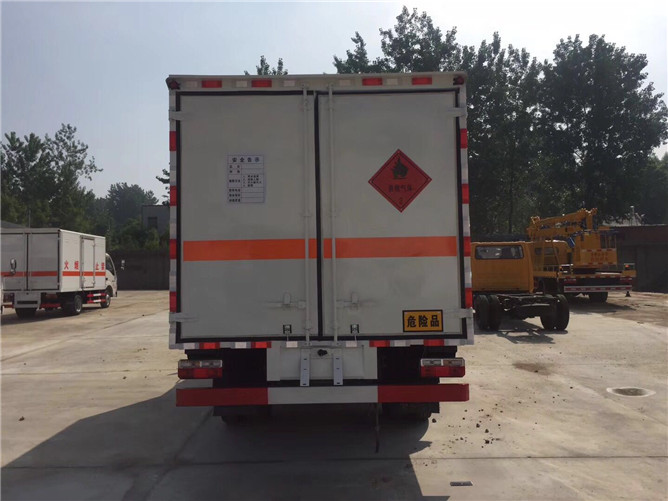 我公司生產(chǎn)的氣瓶運(yùn)輸車廂體為雙層金屬結(jié)構(gòu),廂體尾部雙開門,外板采用靜電屏蔽冷軋鋼板,中間填充B1級阻燃泡沫,內(nèi)飾為鋁板。廂體上側(cè)安裝防雨通風(fēng)透氣孔。底板為花紋板,上鋪防靜電膠皮,廂內(nèi)兩側(cè)加裝固定貨物臥環(huán),門框帶防盜報(bào)警器,頂部帶氣味報(bào)警器,底盤上裝有兩條拖地導(dǎo)靜電膠帶,廂體外側(cè)安裝示廓標(biāo)記燈以及手提滅火器等安全裝置(選裝隔板、側(cè)門)。