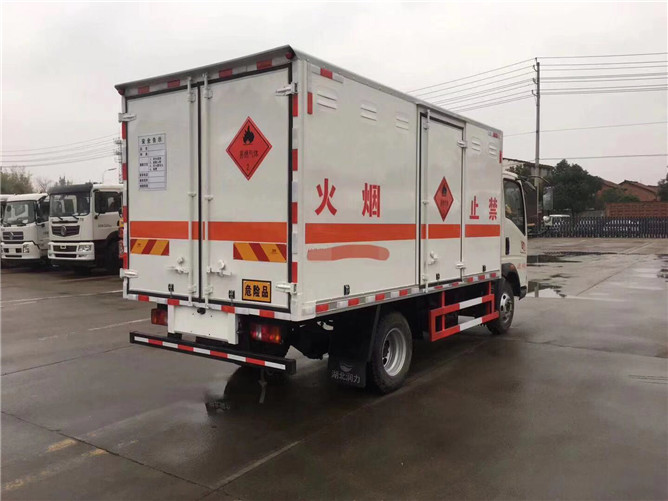氣瓶運(yùn)輸車(chē)主要用于運(yùn)輸具有獨(dú)立容器(瓶)包裝的易燃?xì)怏w(罐(瓶)裝壓縮氫、液化石油氣),類(lèi)項(xiàng)號(hào)為2.1和非易燃無(wú)毒氣體(罐(瓶)裝二氧化碳、氧氣、氮?dú)?、氬氣),?lèi)項(xiàng)號(hào)為2.2。廂體外部按國(guó)家標(biāo)準(zhǔn)配置設(shè)警示標(biāo)志,廂體兩側(cè)安裝可燃?xì)怏w標(biāo)志,帶“燃”字樣,駕駛室頂部安裝危險(xiǎn)三角牌,車(chē)身側(cè)門(mén)及后部粘貼橙色反光標(biāo)識(shí)和菱形標(biāo)識(shí)。