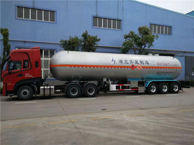 我公司生產(chǎn)的新款61.9立方液化氣半掛車是按2021年新規(guī)申報的車型,安全達標已通過,它采用WH590E新型材料制作,罐體內(nèi)設有七道防浪板,配置雙出液,雙側(cè)裝卸,閥門箱、工具箱、擋泥板、輪轂均為鋁合金材質(zhì),承載能力強,且重量輕,整車自重13.7噸,上戶無憂。