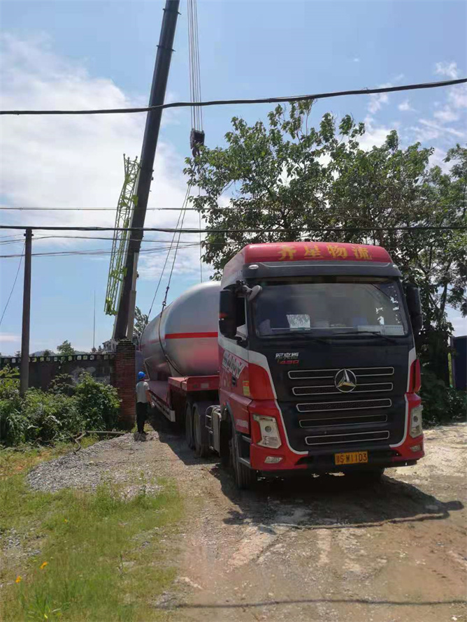 今天上午10點左右,我公司物流車隊陳師傅從江西撫州一客戶的氣站內(nèi)發(fā)來儲罐起吊的圖片:100立方液化氣儲罐安全送至指定液化氣站內(nèi)。