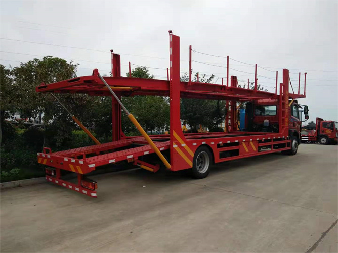 此款5位轎車運(yùn)輸車是一款比較經(jīng)典的車型,他的尾部可以采用液壓油缸或鏈條式兩種結(jié)構(gòu),各有千秋。