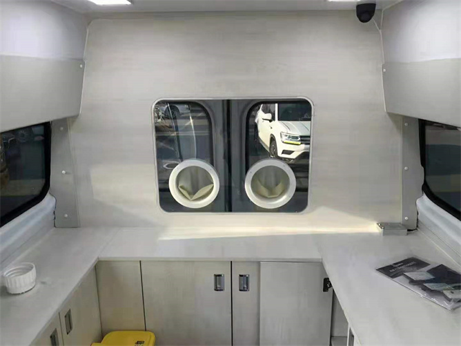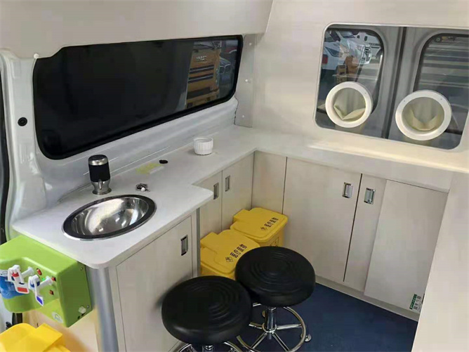 由上圖可以看出,該核酸檢測車采用福特底盤,內(nèi)部結(jié)構(gòu)設(shè)計(jì)簡潔大方,它具有可移動(dòng)作業(yè)的優(yōu)點(diǎn),是當(dāng)前醫(yī)務(wù)工作人中降低勞動(dòng)強(qiáng)度,提高篩選效率的好幫手。