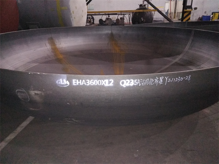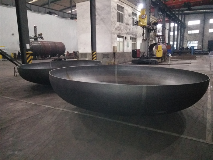 兩件直徑3600毫米的封頭由于展開圓尺寸較大,還是到制作現(xiàn)場焊接而后成型。