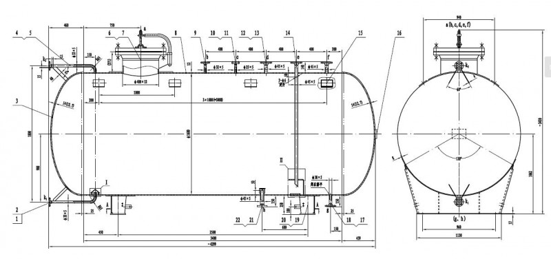 8立方液氨儲罐一般按直徑1600mm設(shè)計,設(shè)計壓力按標(biāo)準(zhǔn)規(guī)定取2.16MPa,材料為Q345R,筒體厚度12毫米,封頭厚度14毫米,總長4.3毫米??梢匝b載4噸液氨介質(zhì),罐體上管口均開設(shè)在罐體上方,如液相進(jìn)出口、氣相、排空口等。