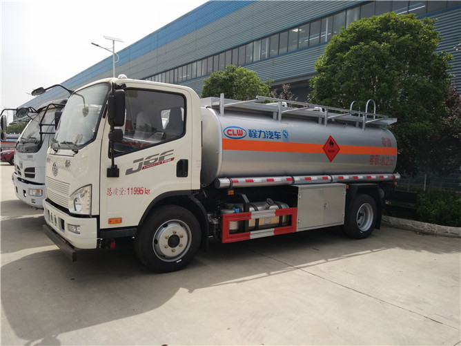 該款加油車采用解放底盤,配置單排駕駛室,濰柴160馬力發(fā)動機(jī),多功能方向盤,150L鋁合金油箱,帶國產(chǎn)ABS,定速巡航,空調(diào),后處理器前置,且裝有爆胎應(yīng)急安全裝置,是危險(xiǎn)品專用底盤。