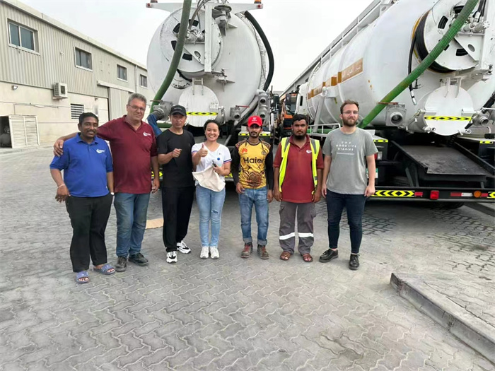 5月18日上午,幾位國外客戶如期來我公司吸污車分廠,對兩臺18立方重汽吸污車進行現(xiàn)場驗收,經(jīng)過對底盤、罐體和各細節(jié)一番檢驗后,表示滿意,并與業(yè)務(wù)員一起合影留戀。