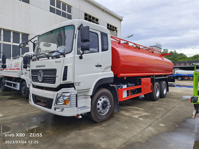 該車搭載東風(fēng)底盤,配置康明斯290馬力發(fā)動(dòng)機(jī),采用Q235優(yōu)質(zhì)碳鋼制造,結(jié)構(gòu)為方圓形,筒體厚度5mm,封頭厚度6mm,罐體按用戶要求噴涂成純紅色,十分漂亮。罐體為通倉(cāng)結(jié)構(gòu),裝有油泵,帶全套歐標(biāo)(一個(gè)歐標(biāo)罐口,一個(gè)海底閥,一套油氣回收,一個(gè)防溢流探桿及插座,一個(gè)下裝油口),海底閥帶智控系統(tǒng),嚴(yán)格按油車標(biāo)準(zhǔn)生產(chǎn)制造。