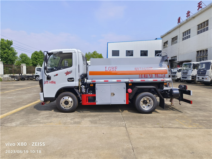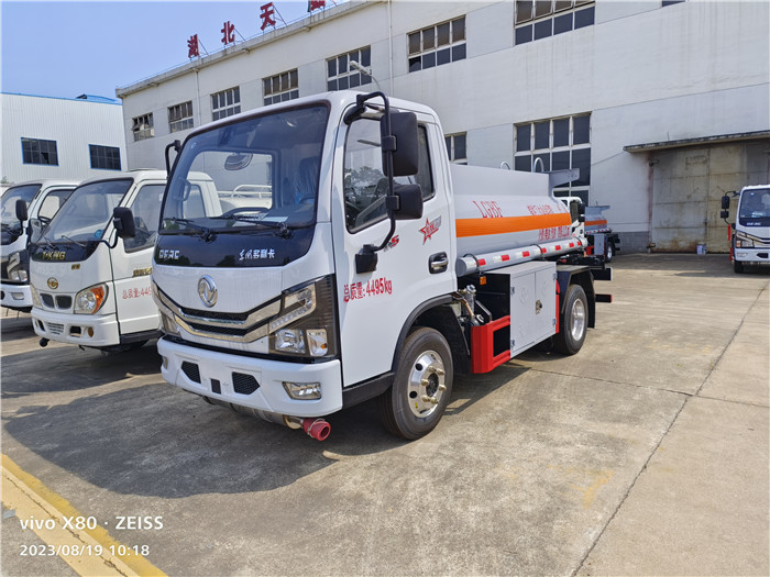 該車配置國六東風(fēng)原廠底盤,搭載全柴115馬力發(fā)動(dòng)機(jī),軸距為2700mm,采用6.50R16LT 10PR輪胎,總質(zhì)量為4495kg,額定質(zhì)量1495kg,外形尺寸為:5290x2000X2170mm,采用優(yōu)質(zhì)碳鋼制作,罐體側(cè)面裝設(shè)有工具箱和下裝油接口,使用安全、方便。