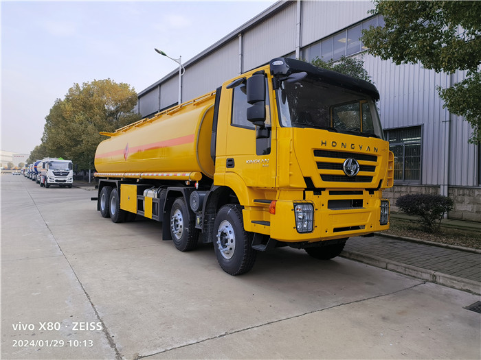 30立方陜汽紅巖運油車搭載新金剛平頂駕駛室(窄體),帶手動翻轉(zhuǎn),MP3,發(fā)動機為濰柴WP10 340 EGRE32,變速箱為12JSD160T,油箱為400L,配置12.00 R20輪胎,軸距 1800+4600+1400 mm,整車型號:CQ5314GJYHTG466。