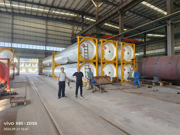 俗話說“金九銀十”,現(xiàn)在氣溫涼爽,車間作業(yè)效率明顯提升。公司壓力容器車間陸續(xù)下線40英尺LPG罐式集裝箱,共計20臺,帶CCS認證,配置高端閥門和安全附件,且經(jīng)過氮氣置換,呈發(fā)貨狀態(tài)。