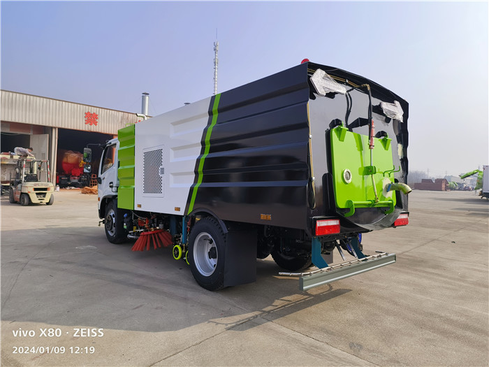 洗掃裝置主要配置:副發(fā)動機、風機、高壓水泵、清水箱約10立方、垃圾箱約7立方、左右立掃、帶噴水桿的寬吸嘴、低壓沖洗系統(tǒng)、掃盤降塵系統(tǒng)、液壓系統(tǒng)、專用裝置電控系統(tǒng)和副車架等改裝而成,副發(fā)動機采用康明斯170馬力,帶2個中置掃盤,力頓馬達,海普瑞斯電磁閥,海普瑞斯油缸,GTM高壓水泵,高壓前角噴,高壓后噴霧,高壓卷盤,高壓路沿清洗噴頭,低壓前對沖,垃圾箱高壓自潔,CAN總線控制+尾部操作盒,LED箭頭燈,垃圾箱、水箱帶防溢低水位報警裝置,可視影像!