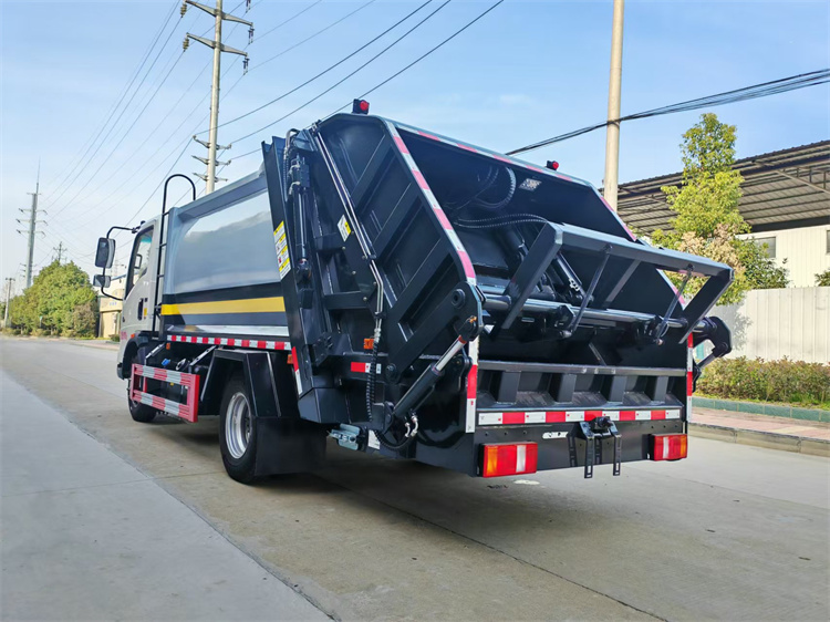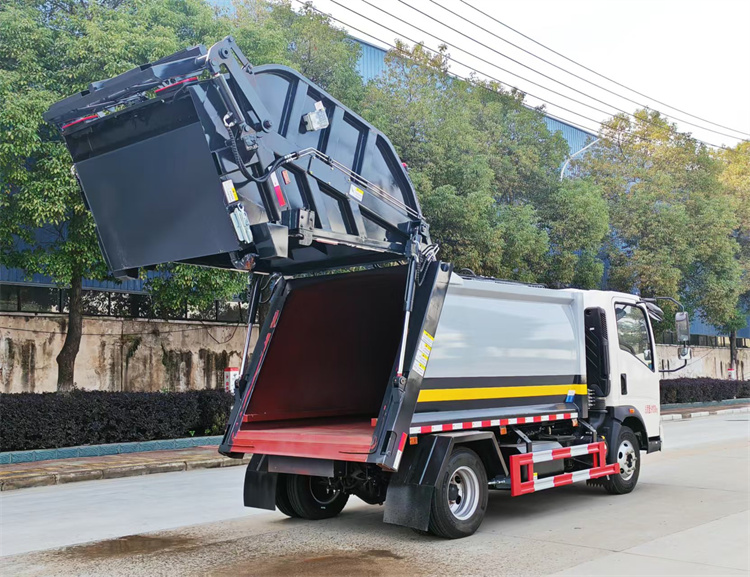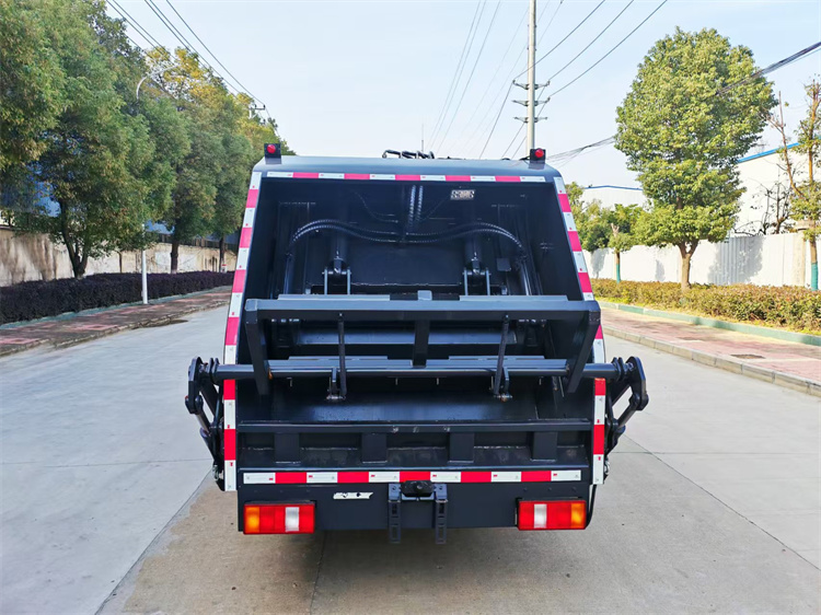 配置:采用Q345錳鋼高強板弧形箱體,邊4底5,由廂體、裝料機構(gòu)、壓縮機構(gòu)、卸料機構(gòu)、油泵、油缸、控制閥等組成的液壓機構(gòu)組成,雙向蠕動壓縮,裝料機構(gòu)由支架,連桿機構(gòu),凸輪,掛鉤等組成,可掛120L或240L雙桶。國內(nèi)知名品牌液壓系統(tǒng)(安徽皖液泵、中梅多路閥、恒力定制油缸、浙江嘉善取力器)