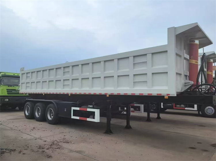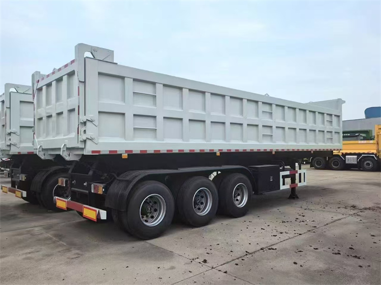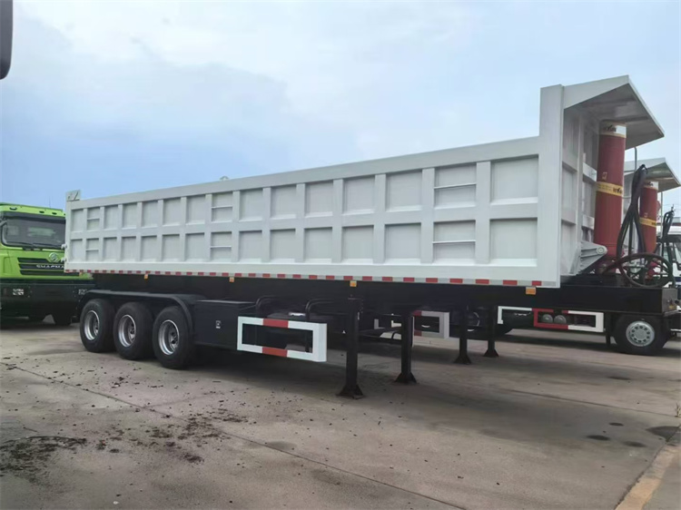 自卸式三軸半掛車裝載能力強,裝卸方便,因而在很多工程項目中備受青睞,今天兩臺可容納32立方的自卸半掛車完工,將發(fā)往非洲交付用戶,它采用前置液壓系統(tǒng),貨箱整體顏色為白色,鋼板材質和車軸均為國內一線品牌,詳細配置如下: