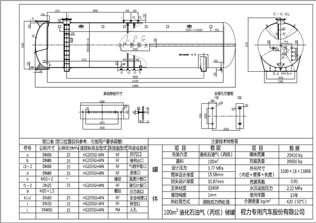 100立方液化氣儲罐在一些大型的液化氣充裝站和石油化工廠內經(jīng)常用到,若考慮成本因素,直徑3100mm的生產(chǎn)的較多。液化氣儲罐產(chǎn)品這種承壓設備按《固定式壓力容器》標準,必須安裝有安全附件來監(jiān)測罐體內部LPG介質的物理特性。