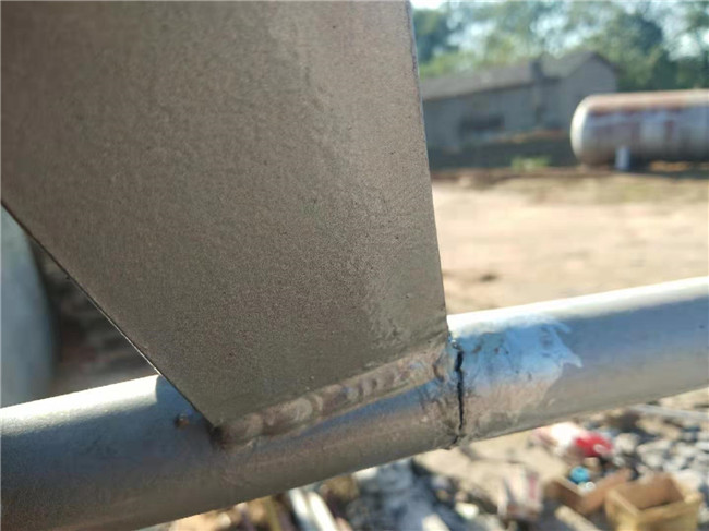 據(jù)悉,此次維修是應(yīng)用戶江總的要求,前半個(gè)月左右江總從我公司提走3臺(tái)100立方液化氣儲(chǔ)罐,后來(lái)卸貨吊裝時(shí),因操作人員失誤,儲(chǔ)罐外面一根DN32的液位計(jì)接管與水泥基座相撞,液位計(jì)與角鋼焊接的地方斷裂了60%,出現(xiàn)了一個(gè)裂口,必須重新焊接。