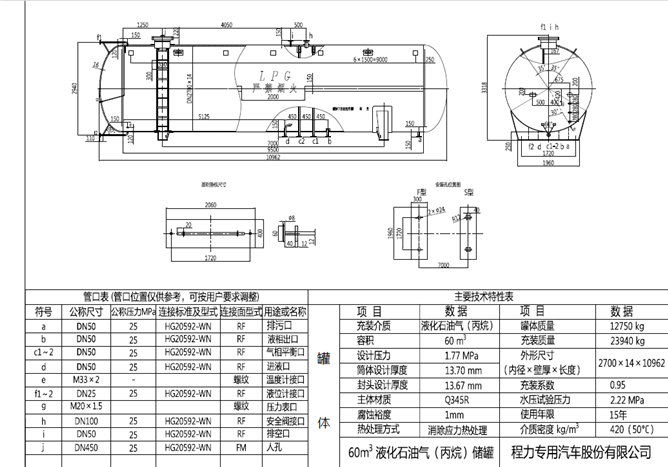 液化氣儲罐設(shè)備用于貯存液化石油氣介質(zhì),具有承壓、密閉的特點(diǎn),在使用過程中還要接受檢驗(yàn)部門的檢查。儲罐的規(guī)格型號繁多,60立方液化氣儲罐在一些中等規(guī)模的液化氣站中經(jīng)常用到,根據(jù)直徑不同主要分為直徑2700mm,直徑2800mm二種。主要參數(shù)如下: