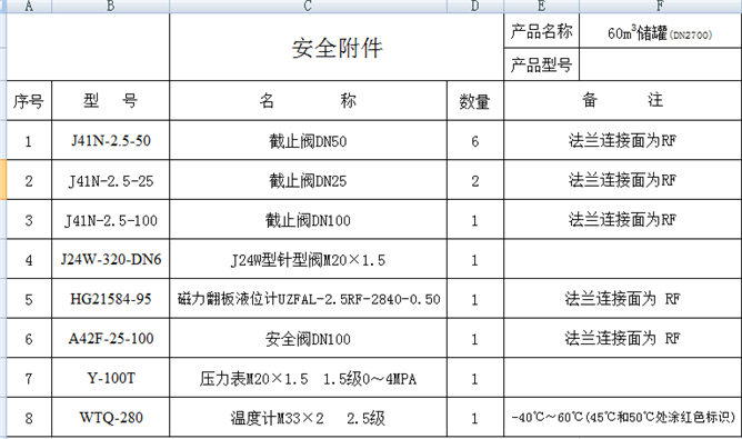 由清單可以看出,液氨儲(chǔ)罐安全附件跟罐體上的罐口是密切相關(guān)的,液相若改用DN80的,截止閥就會(huì)隨之改變,因此用戶(hù)朋友們?cè)谫?gòu)買(mǎi)時(shí)一定要按照你的圖紙來(lái),避免弄錯(cuò)。