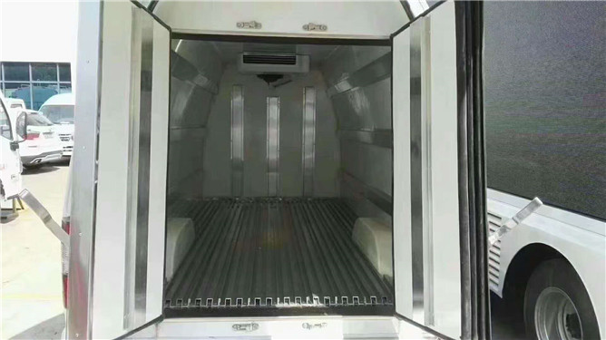 此款冷藏車整車型號:BJ5039XLC-E2,搭載航天三菱4K22D4M汽油發(fā)動機,160馬力,2.37排量,3050軸距,ABS+EBD,駕駛室冷暖空調(diào),電動門窗,方向助力,電子可調(diào)大燈,整車尺寸5320×1695×2430(mm),貨廂尺寸2900×1400×1430(mm),箱體內(nèi)外玻璃鋼,5-200px高密度保溫板,后雙開門,門鎖件為不銹鋼。標配KL180D制冷機組,可選裝五面通風槽,溫濕記錄儀。