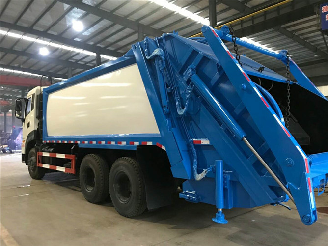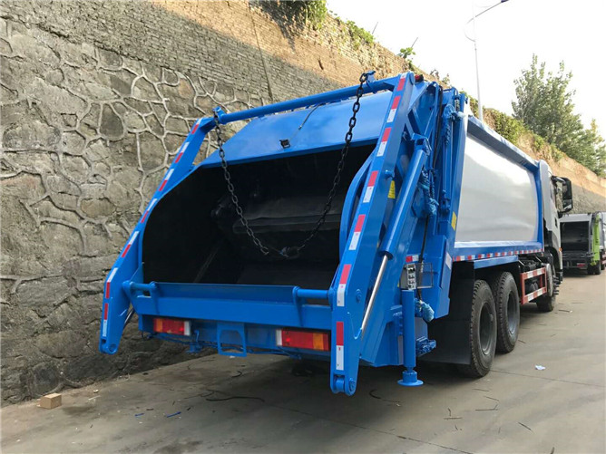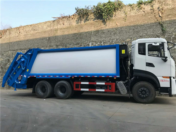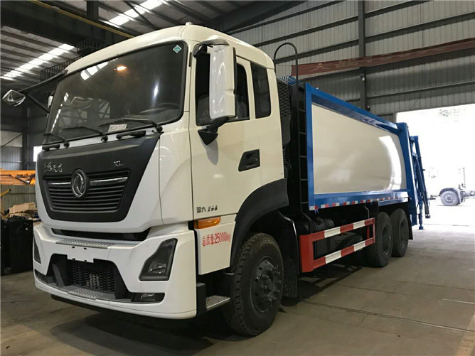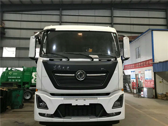 19立方東風天龍壓縮式垃圾車搭載康機270馬力發(fā)動機,后翻轉帶擺臂,是壓縮式垃圾車中容量較大的車型。